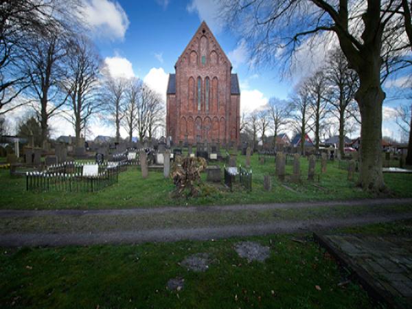 De forse 13e-eeuwse kruiskerk lijkt nog imposanter door de in verhouding lage vrijstaande toren uit dezelfde bouwtijd. De buitenkant van de kerk is fraai met nissen en siermetselwerk. Binnen is het al even fraai vanwege de vele schilderingen, en alle houtsnijwerk op divers meubilair. Heel bijzonder zijn twee middeleeuwse sculpturen: het hoofd van Christus en dat van Maria. Hoogstwaarschijnlijk een restant van een beeldengroep, een zogenaamde Calvariegroep, die buiten de kerk heeft gestaan.